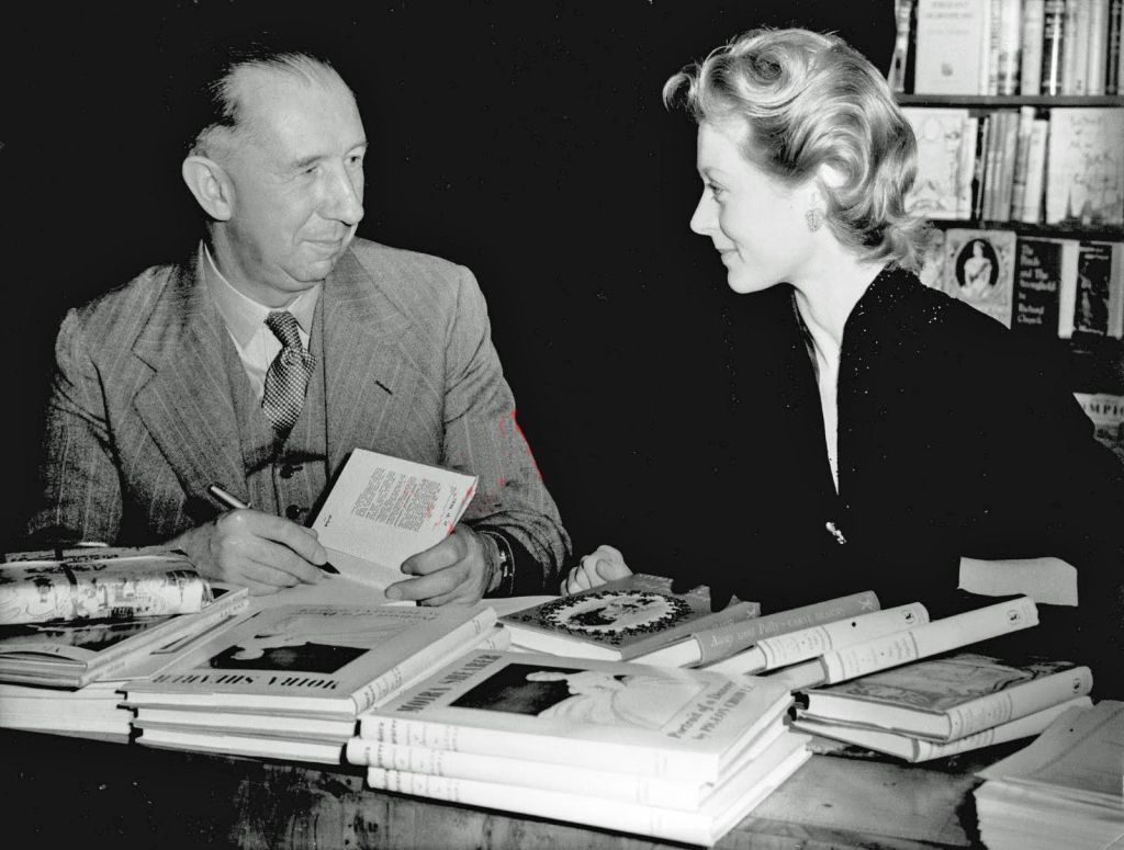 Moira Shearer and Nevil Shute at a book-signing event at Harrods, London in May 1953. Photographer not known.
