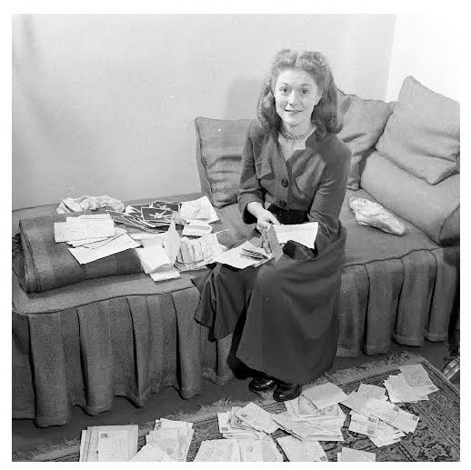 Moira Shearer confronts her fanmail, circa 1949. Photo by William Sumits